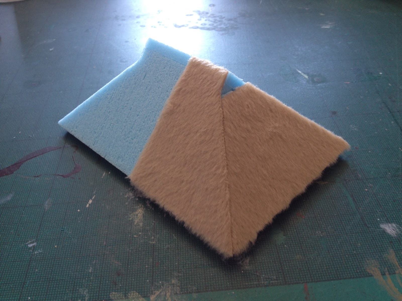 The roof construction was a 1.5mm card construction then a 5mm blue foam build with rounded edges with the material on top. This was then given a liberal coat of 'browned' wood glue and left to dry. Several ink washes and light drybrushes later it didn't turn out too bad.